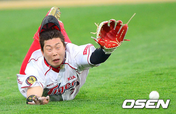 15일 오후 광주 무등구장에서 열린 '2013 한국야쿠르트 세븐 프로야구' KIA 타이거즈와 SK 와이번스의 경기, 3회초 2사 SK 정근우의 타구를 KIA 나지완 좌익수가 놓치고 있다