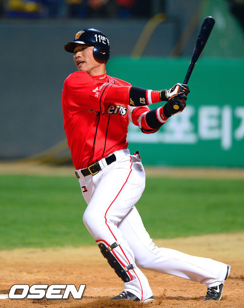 15일 오후 광주 무등구장에서 열린 '2013 한국야쿠르트 세븐 프로야구' KIA 타이거즈와 SK 와이번스의 경기,4회초 무사 1루 SK 김상현이 안타를 날리고 있다