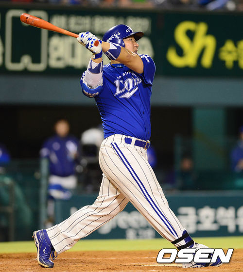 15일 오후 서울 잠실구장에서 열린 '2013 한국야쿠르트 세븐 프로야구' 두산 베어스와 삼성 라이온즈의 경기 5회초 선두타자 최형우가 솔로홈런을 치고 있다.