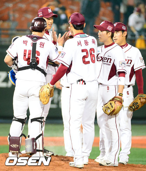 경기를 마치고 넥센 선수들이 그라운드에 모여서 기쁨을 나누고 있다. / rumi@osen.co.kr