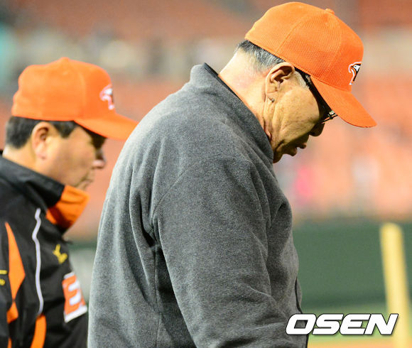 경기를 마치고 한화 김응용 감독이 고개를 숙인채 퇴장하고 있다. / rumi@osen.co.kr
