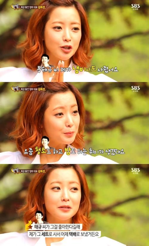 김희선은 15일 방송된 SBS '한밤의 TV연예'와의 인터뷰에서 "봉태규가 요리를 하고 청소하는 걸 좋아해서 냄비를 선물했다"고 전했다.