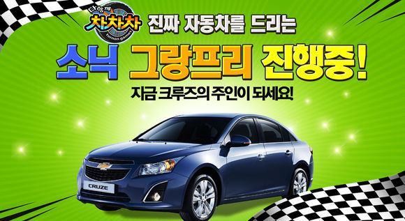 오는 24일 자정까지 열리는 '소닉 그랑프리' 대회에는 현물로 준준형차 쉐보레의 '크루즈'를 비롯해 탭북, 아이패드 등의 경품이 걸려있고 클래스에 상관없이 단일차종 '소닉'을 보유한 이용자는 누구나 참가가 가능하다.