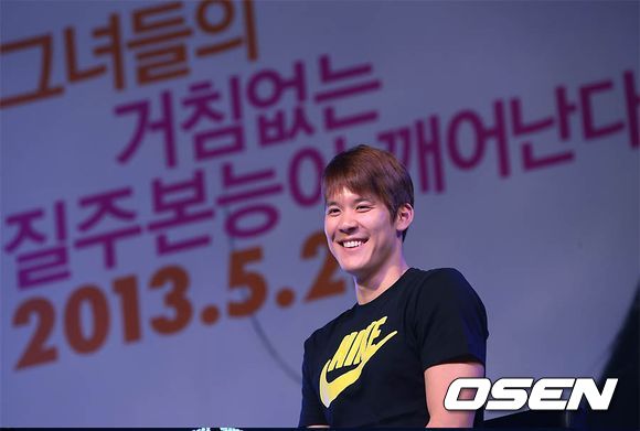 [OSEN=사진팀] 서울시청 앞 광장에서 5월 13일부터 15일까지 열린 나이키 쉬런서울7K (NIKE SHE RUNS SEOUL 7K) 엑스포 마지막 날 15일 밤 행사에 깜짝 참석한 대한민국 수영국가대표 박태환 선수가 여성 러너들의 질주본능을 깨우는 토크쇼에서, 5월 25일 열리는 대회의 레이스 완주를 응원하고 있다.