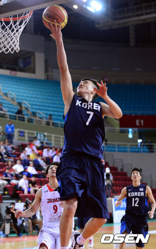 16일 오후 인천 삼산월드체육관에서 열린 '제3회 동아시아 남자농구선수권대회' 한국과 일본의 경기 1쿼터 박찬희가 레이업을 시도하고 있다.