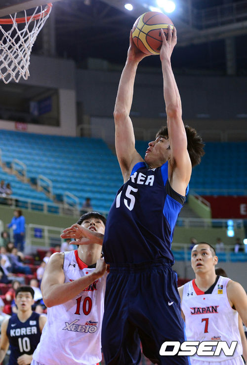 16일 오후 인천 삼산월드체육관에서 열린 '제3회 동아시아 남자농구선수권대회' 한국과 일본의 경기 1쿼터 김종규가 골밑슛을 시도하고 있다.