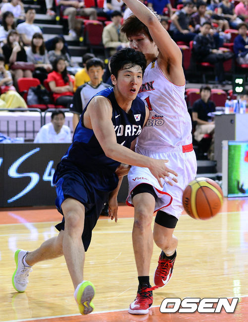 16일 오후 인천 삼산월드체육관에서 열린 '제3회 동아시아 남자농구선수권대회' 한국과 일본의 경기 3쿼터 박재현이 골밑에서 패스를 시도하고 있다.