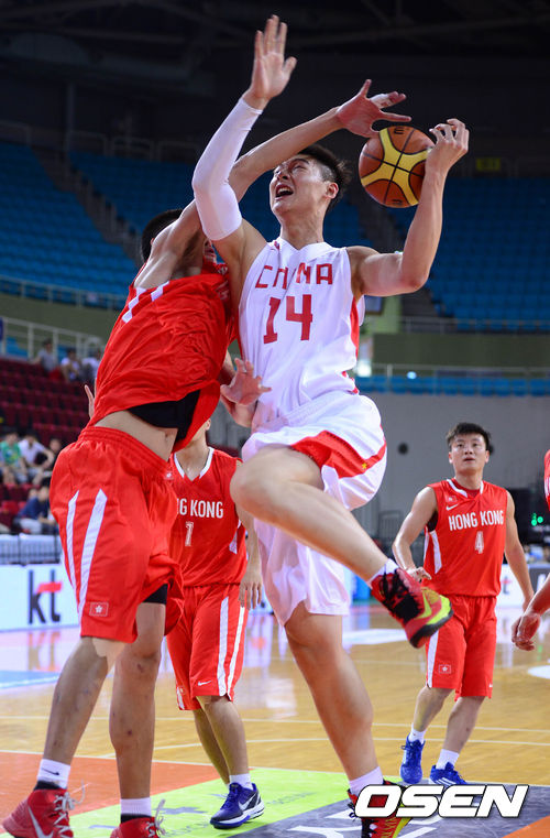 16일 오후 인천 삼산월드체육관에서 열린 '제3회 동아시아 남자농구선수권대회' 중국과 홍콩의 경기 2쿼터 왕저린이 골밑슛을 시도하고 있다.