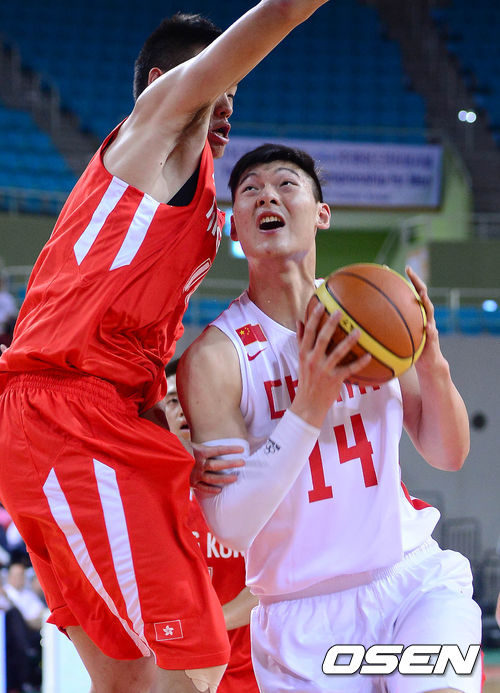 16일 오후 인천 삼산월드체육관에서 열린 '제3회 동아시아 남자농구선수권대회' 중국과 홍콩의 경기 2쿼터 왕저린이 골밑슛을 시도하고 있다.