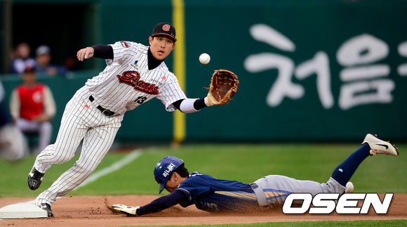 16일 오후 부산 사직구장에서 열린 '2013 한국야쿠르트 세븐 프로야구' 롯데 자이언츠와 NC 다이노스의 경기 1회초 무사 1,2루 NC 김종호가 3루 도루를 시도하고 있다.