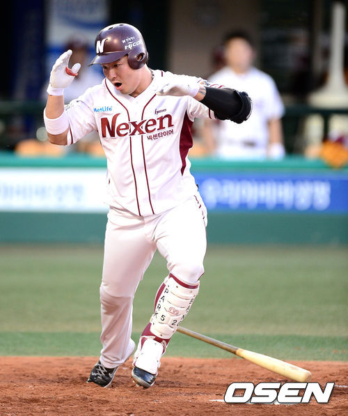 16일 오후 서울 목동야구장에서 열린 '2013 한국야쿠르트 세븐 프로야구' 넥센 히어로즈와 한화 이글스의 경기, 3회말 2사 만루에서 넥센 박병호가 한화 바티스타의 몸쪽 볼에 깜짝 놀라고 있다.