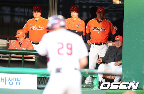 16일 오후 서울 목동야구장에서 열린 '2013 한국야쿠르트 세븐 프로야구' 넥센 히어로즈와 한화 이글스의 경기, 1회말 2사 넥센 이택근 타석에 한화 김응룡 감독이 경기를 지켜보고 있다.