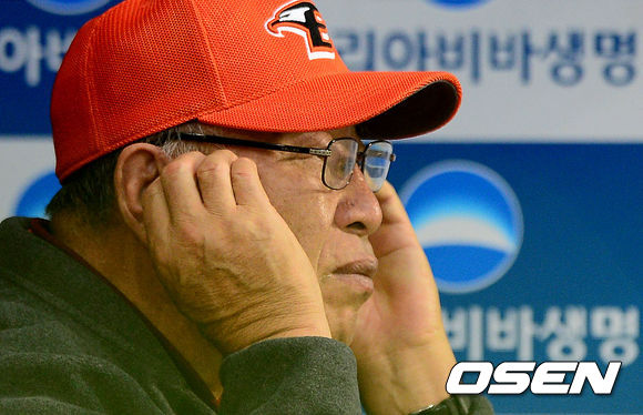 16일 오후 서울 목동야구장에서 열린 '2013 한국야쿠르트 세븐 프로야구' 넥센 히어로즈와 한화 이글스의 경기, 5대0으로 앞선 6회초 한화 김응룡 감독이 경기를 지켜보고 있다.
