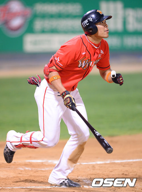 16일 오후 광주 무등구장에서 열린 '2013 한국야쿠르트 세븐 프로야구' KIA 타이거즈와 SK 와이번스의 경기 7회초 1사 1,3루 SK 한동밍이 희생플라이를 날리고 있다