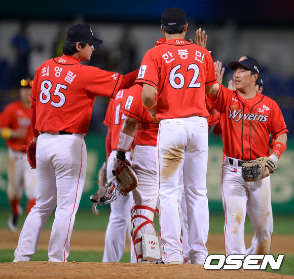 경기종료 후 SK 선수들이 승리의 기쁨을 나누고 있다./soul1014@osen.co.kr