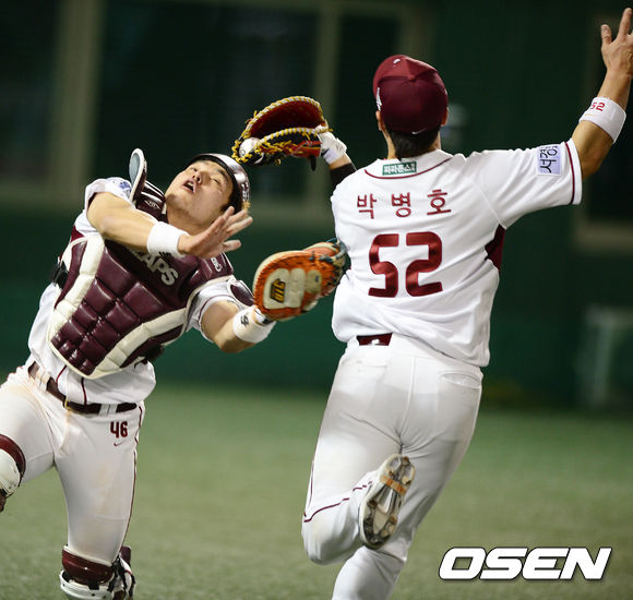 9회초 1사3루에서 넥센 박병호가 한화 최진행의 파울 플라이 타구를 잡아내고 있다. /jpnews@osen.co.kr