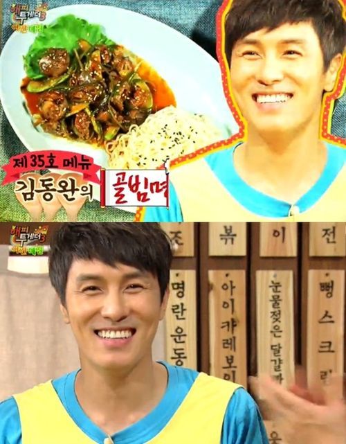 김동완은 16일 방송된 KBS 2TV 예능프로그램 ‘해피투게더3’의 야간매점 코너에서 비빔라면과 골뱅이를 이용한 ‘골빔면’을 소개했다.