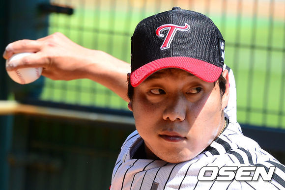 17일 오후 서울 잠실야구장에서 열리는 '2013 한국야쿠르트 세븐 프로야구' LG 트윈스와 KIA 타이거즈의 경기, 경기에 앞서 LG 류제국이 불펜 피칭을 하고 있다. 류제국은 19일 경기에 한국프로야구 첫 선발로 나설 예정이다.