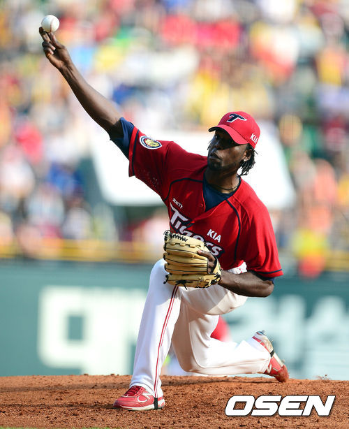 17일 오후 서울 잠실야구장에서 열린 '2013 한국야쿠르트 세븐 프로야구' LG 트윈스와 KIA 타이거즈의 경기, 1회말 KIA 선발 소사가 역투하고 있다.