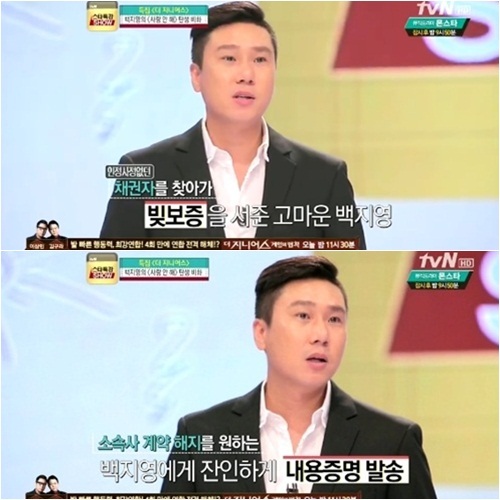 당시 백지영이 이상민의 빚보증을 섰던 이유는 백지영의 ‘사랑 안 해’를 이상민이 제작했던 인연 때문이라고. 하지만 보증에 대해 잘 몰랐던 백지영은 그 일로 인해 채무자에 시달리게 됐다.