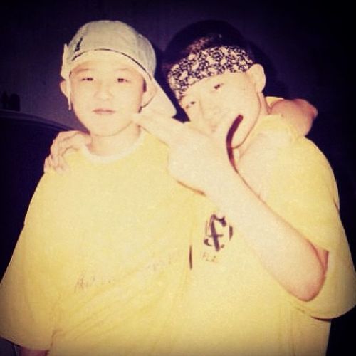 공개된 사진에는 노란 티셔츠를 맞춰 입고 모자와 두건으로 꾸며 꼬마 힙합퍼가 된 지드래곤과 태양의 모습이 담겨있다. 이들은 지금과 다를 바 없는 귀여운 얼굴로 ‘모태 귀요미’임을 인증한다.