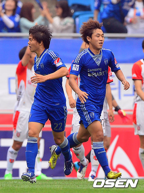 18일 오후 경기 수원월드컵경기장에서 열린 ' 현대오일뱅크 K리그 클래식 2013' 수원 삼성과 제주 유나이티드의 경기,후반 수원 서정진이 골을 넣고 환호하고 있다
