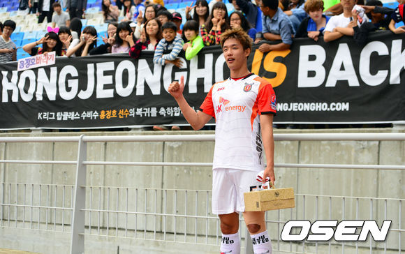 경기종료 후 이날 K리그 복귀한 제주 홍정호가 포즈를 취하고 있다./ soul1014@osen.co.kr