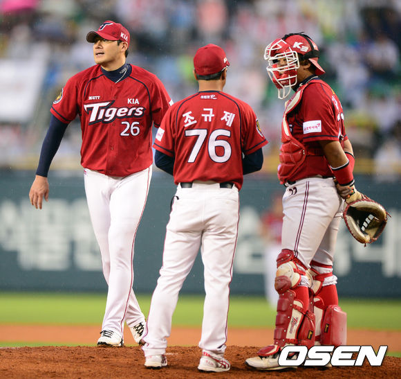 18일 오후 서울 잠실야구장에서 열린 '2013 한국야쿠르트 세븐 프로야구' LG 트윈스와 KIA 타이거즈의 경기, 6회말 2사 3루에서 KIA 선발 서재응이 마운드를 내려가고 있다.