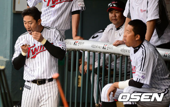 18일 오후 서울 잠실야구장에서 열린 '2013 한국야쿠르트 세븐 프로야구' LG 트윈스와 KIA 타이거즈의 경기, 경기에 앞서 LG 박용택이 안경을 닦으며 경기를 준비하고 있다.