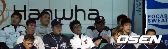 18일 오후 대전구장에서 열린 '2013 한국야쿠르트 세븐 프로야구' 한화 이글스와 두산 베어스의 경기, 5회말 두산 선수들이 심각한 표정으로 경기를 관전하고 있다.