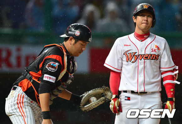 18일 오후 인천 문학경기장에서 '2013 한국야쿠르트 세븐 프로야구' SK 와이번스 대 롯데 자이언츠의 경기가 열렸다. 6회말 SK 공격 2사 1, 2루 상황 3번 최정이 헛스윙 아웃을 당한 뒤 아쉬운 표정을 짓고 있다.
