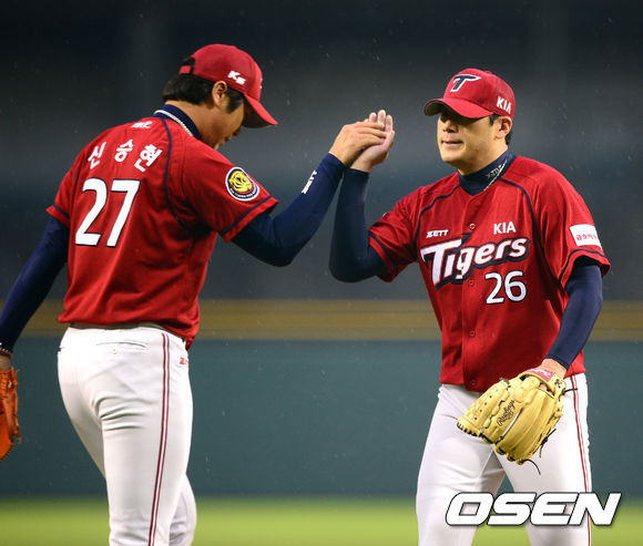 지난 6일 트레이드를 통해 나란히 KIA 유니폼을 입은 두 선수는 이제 KIA의 필승조로 자리매김한 모습이다. 송은범은 이적 후 첫 경기에서 1⅓이닝 무실점으로 강렬한 신고식을 치른 뒤 3경기에서 부진했으나 17일 경기에서는 1⅔이닝 무실점으로 이적 첫 홀드를 챙기는 등 2경기 연속 홀드를 기록했다.