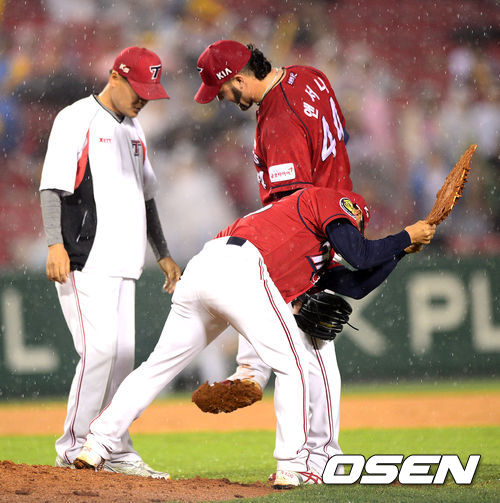KIA 타이거즈가 빗속 접전 끝에 LG 트윈스를 꺾고 주말 위닝시리즈를 확보했다.