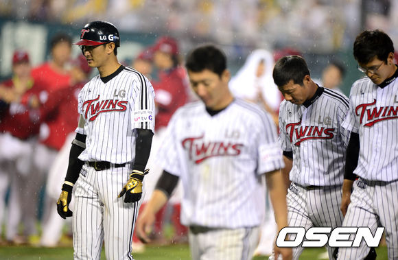 경기후 패배한 LG 선수들이 고개를 숙인채 아쉬워하고 있다./jpnews@osen.co.kr