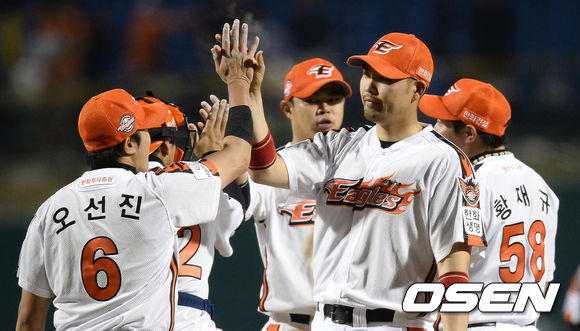 경기 종료 후 승리를 거둔 한화 선수들이 기뻐하고 있다./ youngrae@osen.co.kr