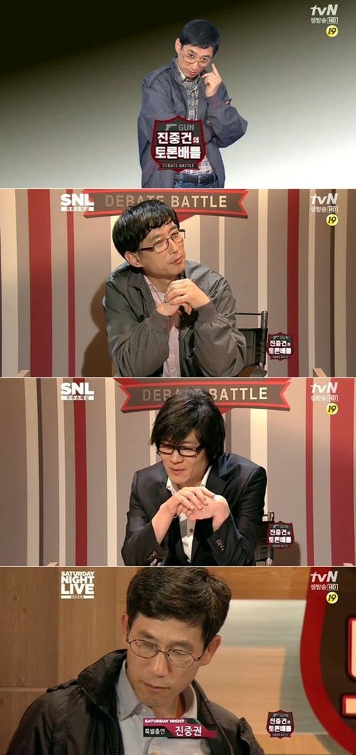 특히 이날 ‘진중건의 토론배틀’에는 실제 진중권이 등장해 논리를 내세우는가 하면 거울을 보며 “원빈”을 언급해 웃음을 자아냈다.