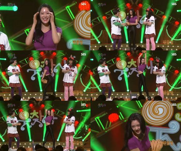 이러한 가운데 방청석에 앉아있던 클라라가 두 사람의 부름에 따라 무대 위로 올라왔고, 화제를 모았던 시구 포즈를 재현했다. 클라라는 이날 역시 검정색 레깅스와 상의가 짧은 티셔츠를 입고 등장, 섹시미를 어필했다. 클라라의 이 같은 모습에 방청객들은 큰 박수와 함성으로 화답했다.