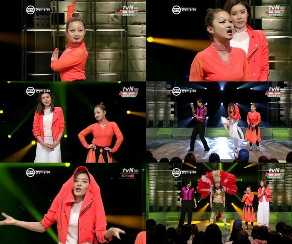 두 사람을 빛나게 한 건 거침없는 분장개그였다. 박나래는 화려한 무대의상에 머리카락 한 올 남기지 않고 올려붙인 헤어스타일, 과감한 눈화장으로 단박에 눈길을 사로잡았다. 또한 트레이드마크인 수염 분장을 잊지 않고 등장, “착각하지마. 나 손연재 아니니까”라고 외쳐 웃음을 자아냈다.