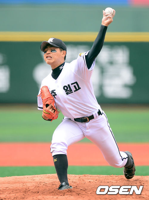 19일 오후 서울 목동야구장에서 '제67회 황금사자기 전국고교야구대회' 덕수고와 광주일고의 경기, 1회초 광주일고 선발 투수 한두솔이 힘차게 공을 던지고 있다.