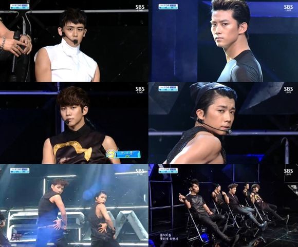 2PM은 19일 오후 방송된 SBS '인기가요'에서 더블 타이틀 곡 중 하나인 '하.니.뿐.'을 열창했다.