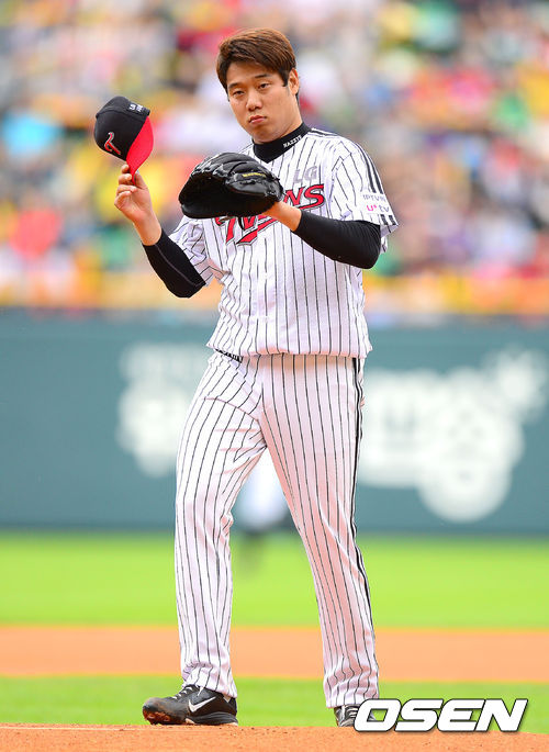 19일 오후 서울 잠실구장에서 열린 '2013 한국야쿠르트 세븐 프로야구' LG 트윈스와 KIA 타이거즈의 경기, 1회초 LG 선발투수 류제국이 마운드에 오르고 있다