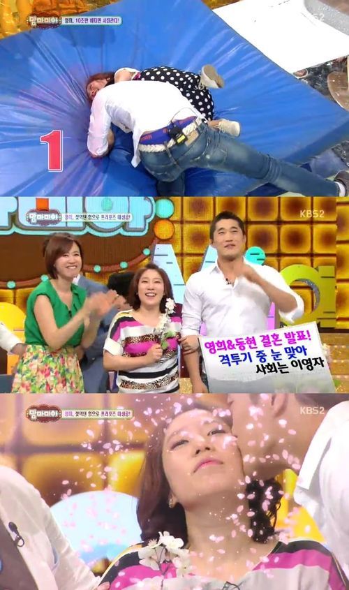 개그맨 김영희가 이종격투기 김동현 선수와 결혼을 걸고 치열한 격투(?) 끝에 승리를 거뒀다.