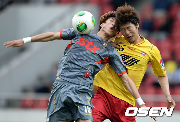 경기 후반 경남 강종국과 성남 임채민이 공중볼 경합을 벌이고 있다. / youngrae@osen.co.kr