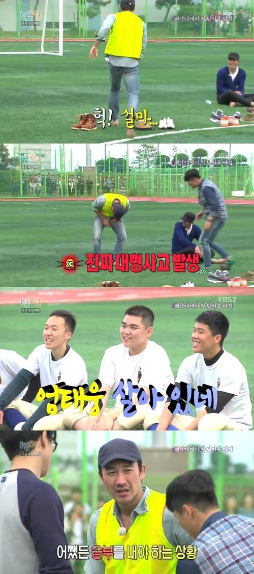 이에 엄태웅을 제외한 모두가 폭소를 터뜨렸고, 하필이면 코디도 부재한 상황에서 엄태웅은 수습을 위해 최선을 다했다. 결국 바지를 갈아입고 등장한 그는 뛰어난 활약으로 팀이 1승을 얻는 데 공헌했다.