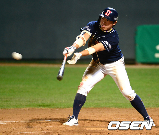 5회에도 2사 2루에서 우전안타를 때린 뒤 2루 도루에 성공하며 한화를 압박한 정수빈은 7회 기어이 결승타점을 만들어냈다. 이번에도 발이었다. 7회 2사 2·3루 찬스에서 정수빈은 한화의 바뀐 투수 윤근영을 상대로 2구째 공을 받아쳤다. 빗 맞은 타구는 1루 쪽으로 느리게 굴러갔다.