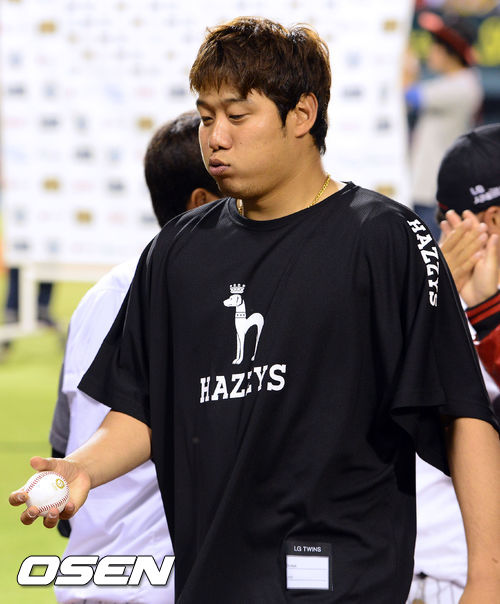 경기종료 후 승리투수가 된 LG 류제국이 기념구를 챙기고 있다./ soul1014@osen.co.kr