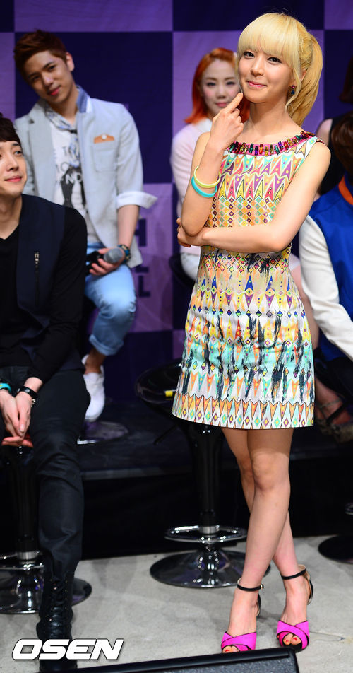 무대 위에서 초아가 깜찍한 표정을 짓고 있다.