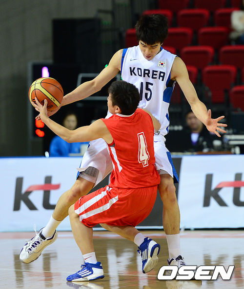 20일 오후 인천 삼산월드체육관에서 열린 '제3회 동아시아농구선수권대회(EABA)' 한국과 홍콩의 경기, 1쿼터 한국 김종규가 홍콩의 공격을 막아내고 있다.