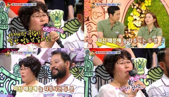 미신에 빠진 어머니가 KBS 2TV 예능 프로그램 '대국민토크쇼 안녕하세요'에 출연해 MC 신동엽은 처복이 있고 정찬우는 쪼잔한 관상이라고 말했다.