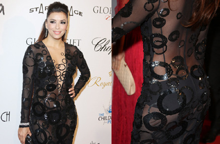 에바 롱고리아는 이번 칸 영화제 레드카펫 행사에서 노팬티로 양 옆이 활짝 트인 드레스 패션을 선보였다가 중요 부위를 노출하는 굴욕(?)을 겪었다. 하지만 롱고리아는 이에 굴하지 않고 각종 행사에서 당당하게 검은색 팬티가 훤히 드러나는 시스루 패션으로 활보, 파파라치 최고의 표적으로 떠올랐다.